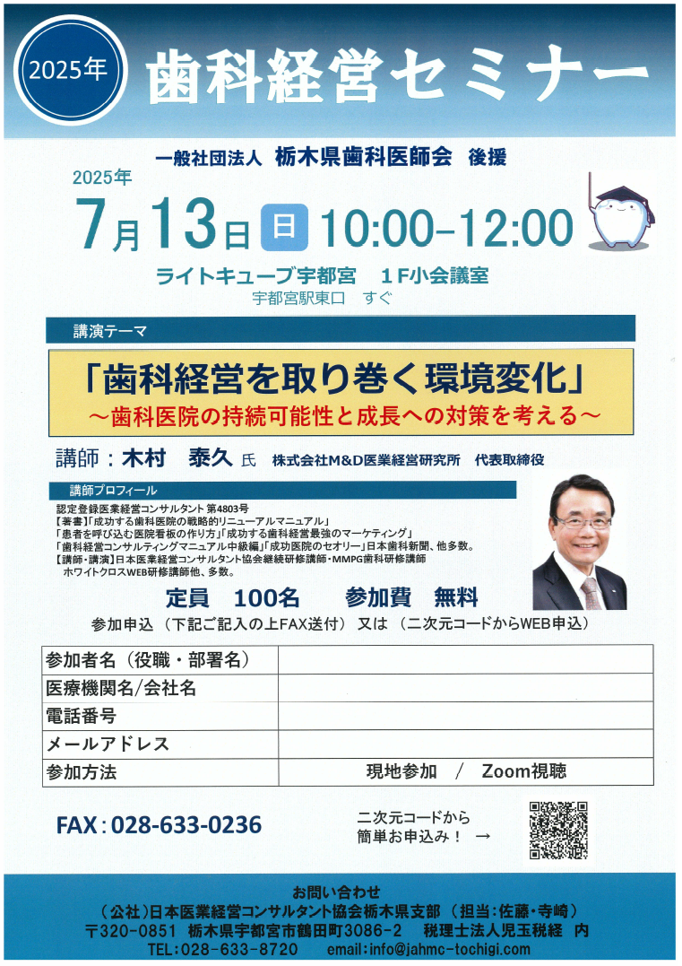 7月13日に歯科経営セミナーを開催いたします。